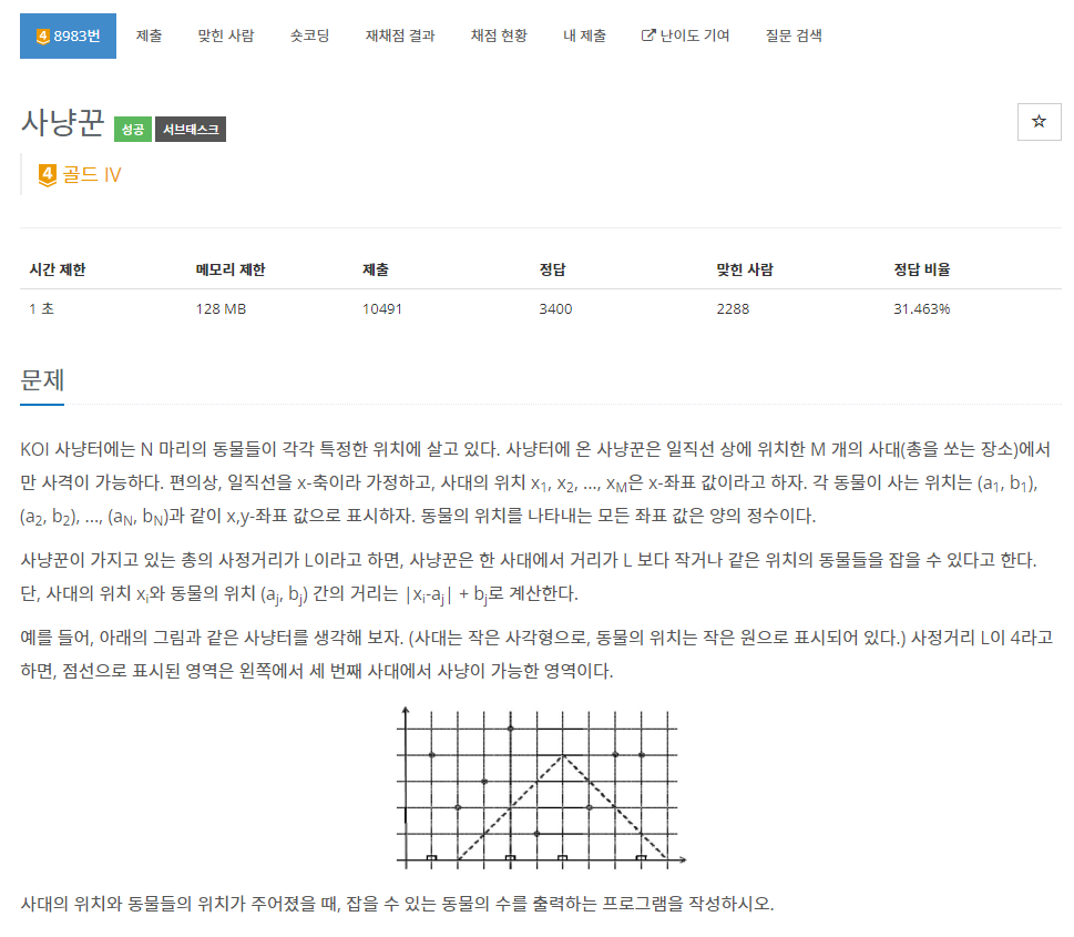 [백준 8983] 사냥꾼C 프로그래밍/BOJ 2022. 9. 1. 21:01728x90
