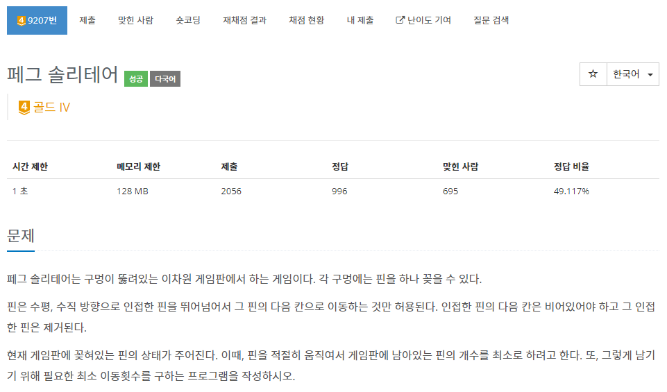 9207번: 페그 솔리테어