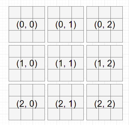 그리고 i행에서 입력받은 숫자를 사용했음을 표시하기 위해 flag_row 배열을 두었다. 같은 용도로 flag_col 배열을 두어 j열에서 입력받은 숫자를 사용했음을 표시했다. flag_cube 행렬은 정사각형 내에서도 1부터 9까지의 수를 중복 사용할 수 없기 때문에 같은 용도로 선언하였다. 이때 (i / 3, j / 3)를 해준 이유은 9 * 9 행렬에서 3 * 3 정사각형이 9개 나오기 때문이다.