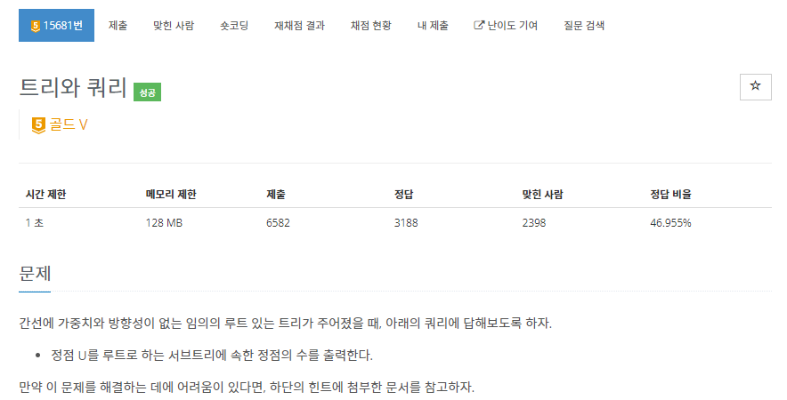 https://www.acmicpc.net/problem/15681