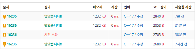 ++22.11.11 큐를 사용하여 다시 풀어봤지만 효율은 더 안좋은 코드..