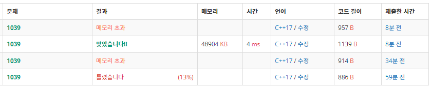 [백준 1162] 도로포장 (0) 2022.10.26 [백준 1175] 배달 (0) 2022.10.25 [백준 19236] 청소년 상어 (0) 2022.10.24 [백준 10217] KCM Travel (0) 2022.10.24 [백준 10711] 모래성 (0) 2022.10.23